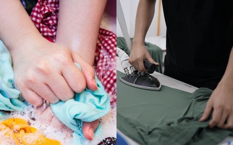 Sau khi có vải, hãy giặt sơ và ủi phẳng để tránh co rút sau này. Trải vải lên mặt phẳng rộng, đặt các mảnh rập giấy lên trên theo đúng chiều canh sợi. Dùng phấn may hoặc bút tàng hình để vẽ lại đường viền của rập lên vải một cách chính xác.