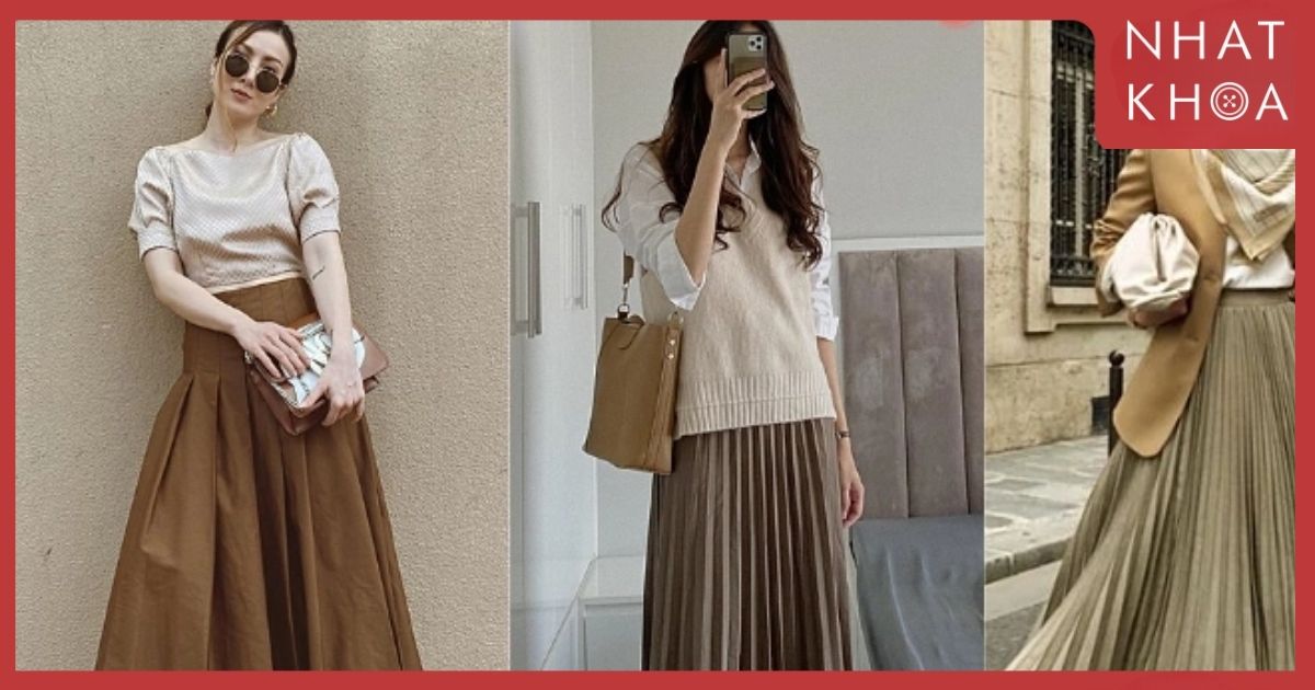 Chân váy xếp ly dài phối với áo gì mùa đông để sành điệu