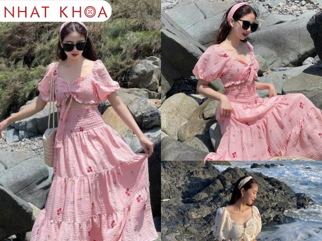 Nhất Khoa Uniform: May đo đầm maxi đi biển có tay vừa vặn