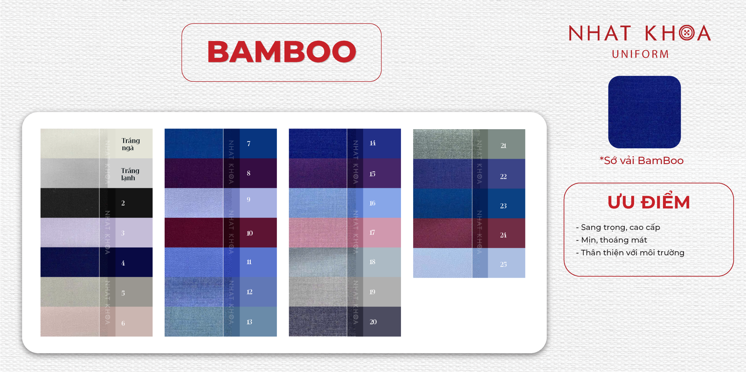 Bamboo fabric is a preferred choice for premium uniform collections. Made from natural bamboo fibers, it not only offers a soft and breathable feel but is also especially environmentally friendly.