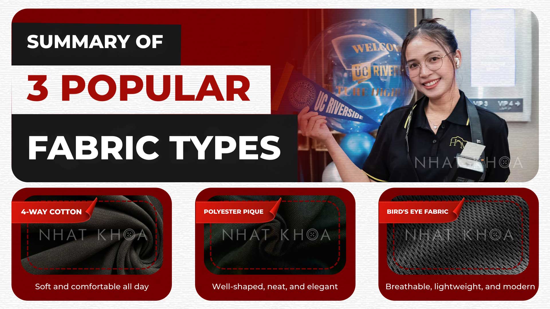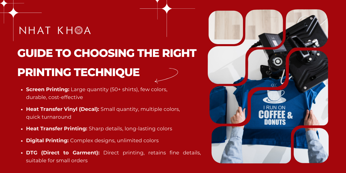To create a beautiful uniform set that truly reflects the spirit of your business, choosing the right printing method and fabric material is extremely important. Today’s market offers countless options for printing and materials, which requires buyers to have a certain level of knowledge in order to make the right decisions. Don’t worry — Nhat Khoa has compiled everything you need to know through the information below.