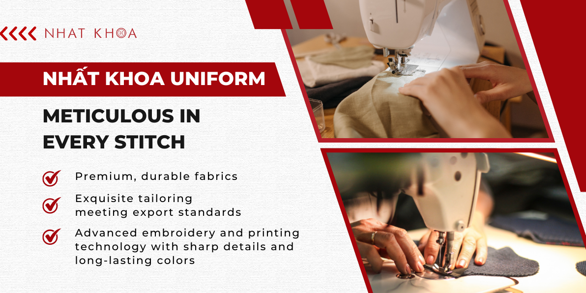 At Nhat Khoa Uniform, we not only provide premium uniforms but also deliver absolute peace of mind. Product quality is always our top priority, reflected through the careful selection of fabrics with clear origins to ensure durability and safety.
