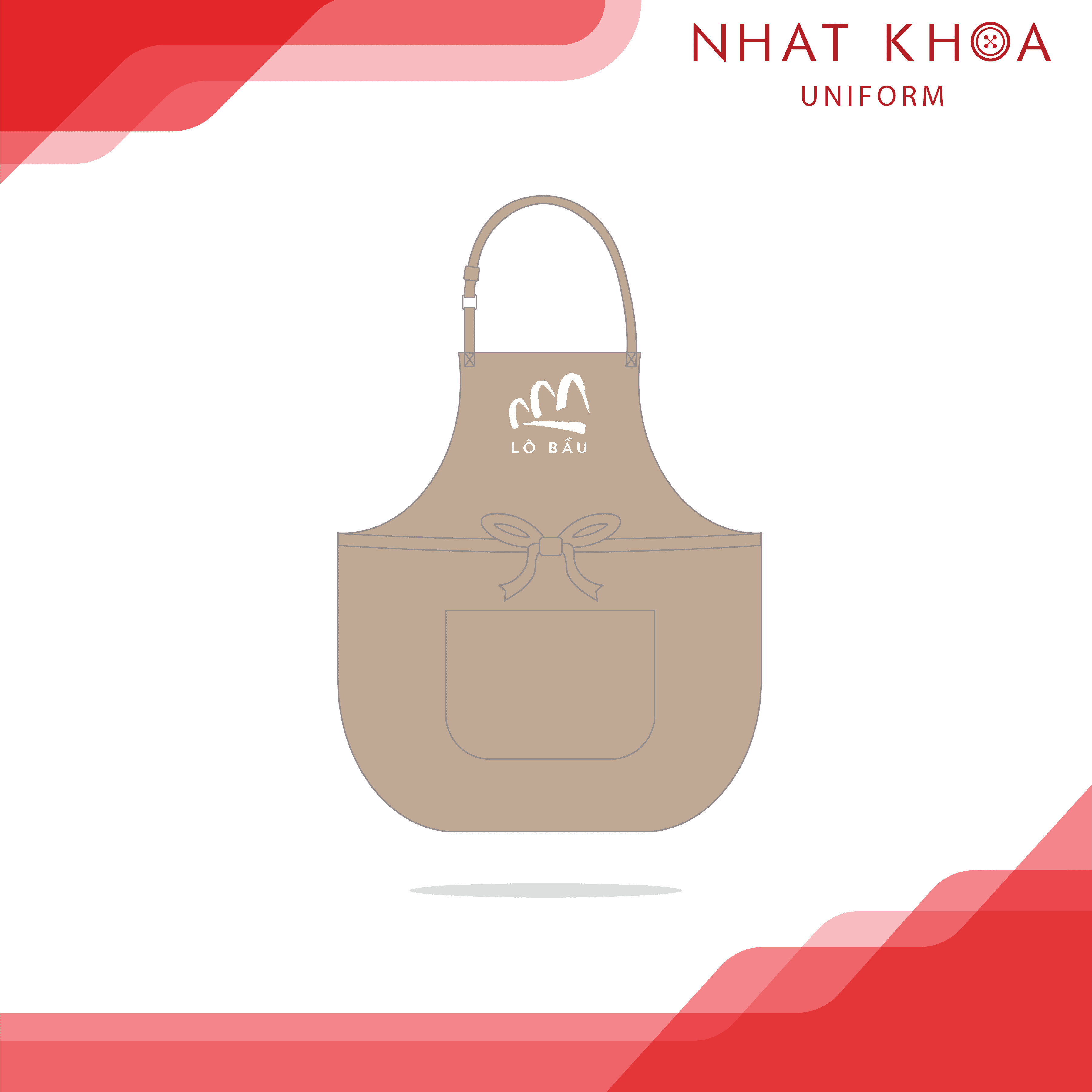 Tạp dề đồng phục Lò bầu mang phong cách nhẹ nhàng, tinh tế với gam màu be trung tính, tạo cảm giác sạch sẽ và thân thiện. Thiết kế đơn giản kết hợp logo thương hiệu đặt nổi bật ở ngực trước giúp tăng nhận diện một cách rõ ràng, phù hợp với các mô hình tiệm bánh, quán cà phê hoặc không gian ẩm thực chú trọng sự chỉn chu và ấm áp trong hình ảnh đội ngũ.