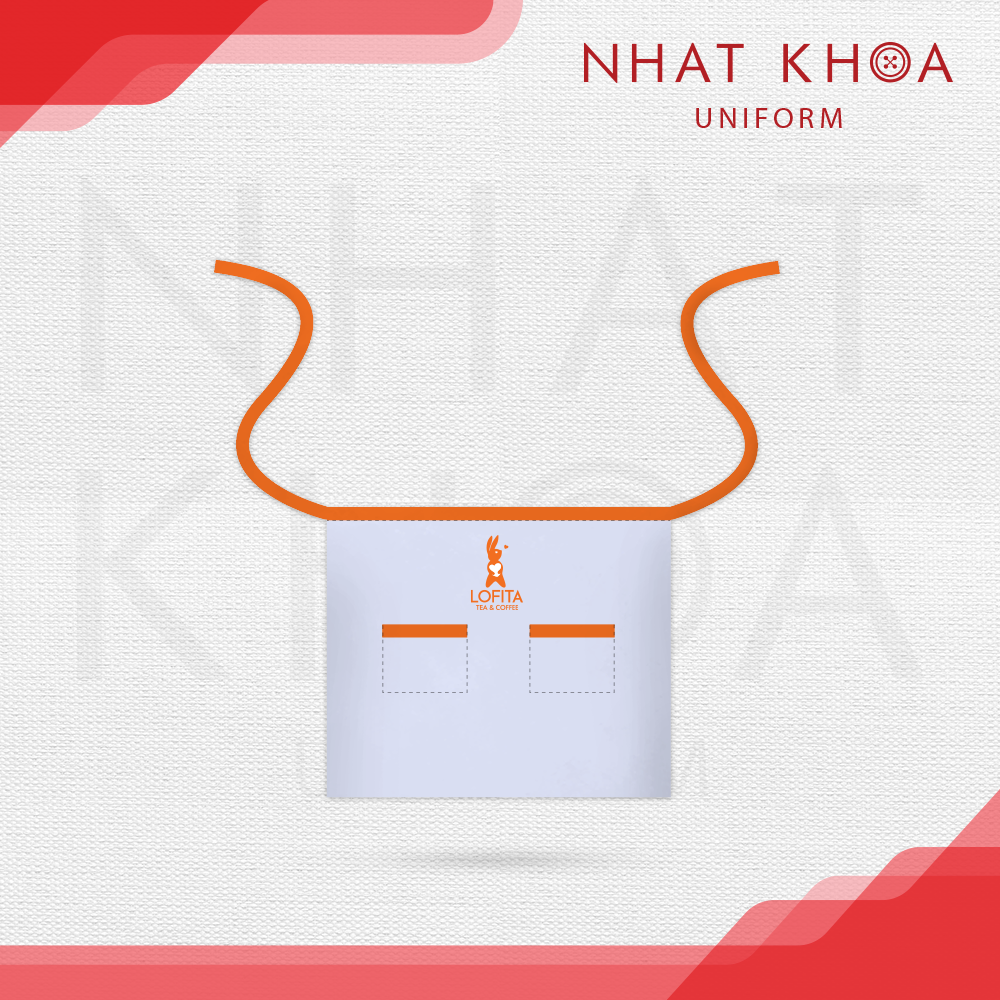 Tạp dề đồng phục Lofita Tea & Coffee mang phong cách trẻ trung, hiện đại với gam màu trắng sáng kết hợp viền cam nổi bật, tạo cảm giác năng động và thân thiện. Logo Lofita Tea & Coffee được đặt tinh tế ở trung tâm giúp tăng nhận diện thương hiệu một cách rõ ràng, phù hợp cho các mô hình quán cà phê, trà sữa hoặc không gian dịch vụ cần hình ảnh đồng bộ, chuyên nghiệp nhưng vẫn gần gũi.